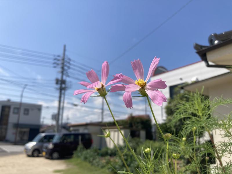 たいへん暑かった夏も終わり、朝夕が涼しくなしました。ももハウスの小さな花壇に、コスモスが咲き始め秋が感じられるようになりました。