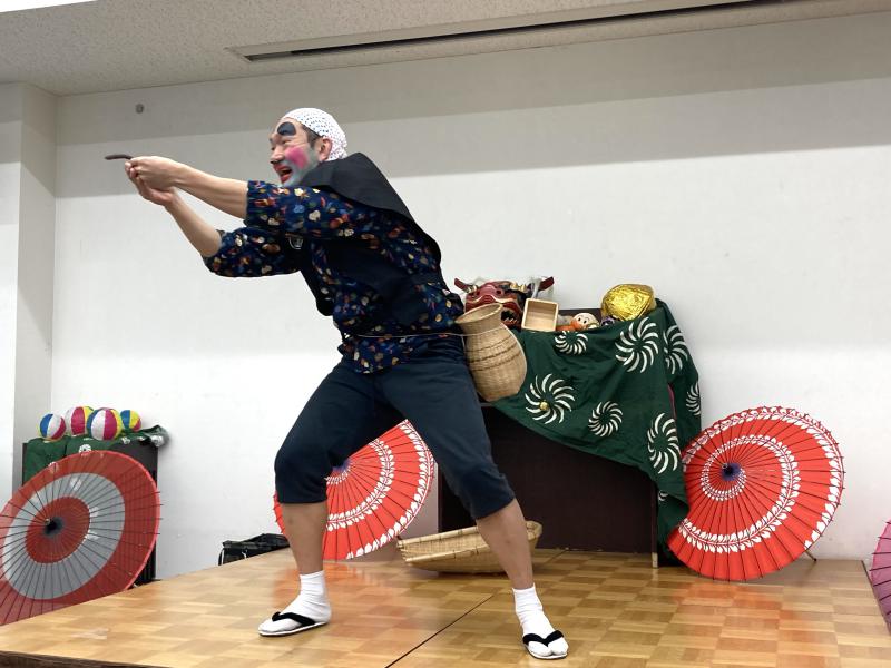 今年の「ももハウス」は、きらめきプラザ(北区南方)からスタート! 3年ぶりに「戦国どじょうすくい・中本さん」をお迎えして「安来節」(=どじょうすくい)を披露し、「どじょうすくい体操」を教えていただきました。そしてお見事な「傘回し」を拝見! 「獅子舞」で、みなさんの頭や肩をかじられて「福」を付けてもらいました!! 今年もたくさんの「福」が来ることを祈念して、みなさんで記念撮影を撮りました !^^)!